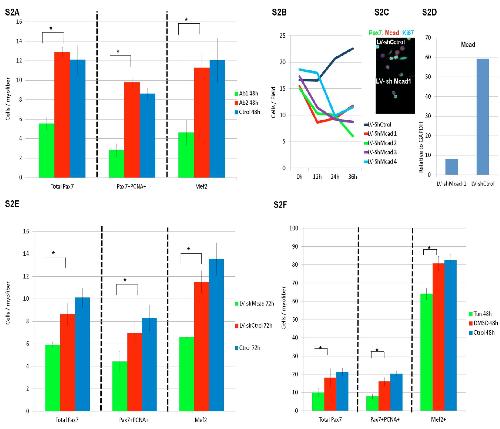 and standard deviation of 3 replicas in each group (* pâ¤0.05). (F)Pax7, PCNA, and Mef2 positive and negative cell count in tissue