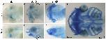 Progression of cartilage differentiation in X. laevis as revealed by alcian blue reactivity. View is indicated in figure. (A and E) at st. 41 heavy staining in the hyoid is seen, with no reactivity in the posterior PAs. (B and F) at st. 43, staining becomes apparent in the intermediate/ventral aspect of the posterior arches (arrows). (C and D) at stage 46, the majority of all future head skeleton elements have begun glycosaminoglycan deposition. (D) a dorsal view with a ventral focal plane of at st. 48 when head skeleton differentiation is largely complete. |
