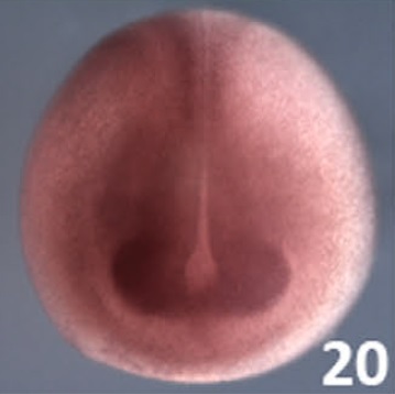 frs3 (fibroblast growth factor receptor substrate 3) gene expression in Xenopus laevis embryo, assayed via in situ hybridization, NF stage 13, animal view. |