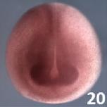frs3 (fibroblast growth factor receptor substrate 3) gene expression in Xenopus laevis embryo, assayed via in situ hybridization, NF stage 20, anterior view, dorsal up. |