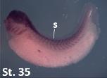 frs3 (fibroblast growth factor receptor substrate 3) gene expression in Xenopus laevis embryo, assayed via in situ hybridization, NF stage 35, lateral view, anterior left, dorsal up. |