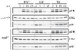 Figure 5. Response of ERK and AKT to extracellular stimulation in esyt2â/â MEFs. Esyt2+/+ and esyt2â/â MEFs were treated at 0Â min. with FGF, EGF and FBS and activation of ERK and AKT followed at the indicated times using phospho-specific antibodies (pERK (â1 and â2) and pAKT). ERK2 was detected using a specific antibody and was used as loading control.