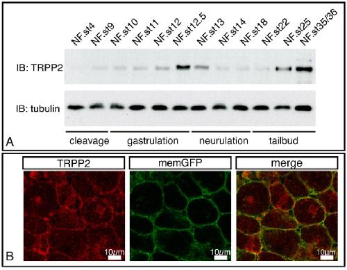 Fig. 1. TRPP2 is expressed in the kidney field. (A) Temporal