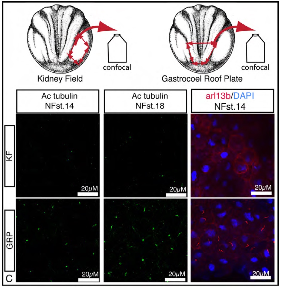 Attempts to detect cilia in KF explants were performed by immunolocalization of acetylated