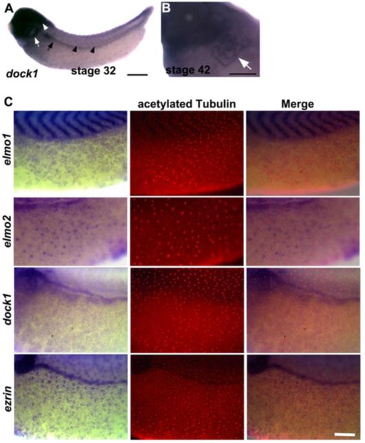Epting, The Rac1 regulator ELMO controls basal body migration and docking in multiciliated cells through interaction with Ezrin. 2015, Pubmed