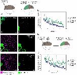 Figure 2 [A-L] Xenopus laevis embryos were microinjected bilaterally with mRNA encoding mRFP (500pg) and Dvl-GFP (500pg) into the animal hemisphere at the two cell stage. In addition embryos were injected with increasing amounts of Wnt11b mRNA. [A-D] Control animal explants over expressing mRFP and Dvl-GFP. Animal explants injected with [E-H] Wnt11b (400pg) or [I-L] Wnt11b (800pg) mRNA. The white boxes in [C], [G] and [K] mark the areas used to create panels [D], [H] and [L] respectively. [M] The data shown in [A-L] is quantified in [M]. Quantification was done using a program written in MatLab, Mann-Whitney U (**P<0.01), error bars represent s.e.m, N=number of embryos. mRFP (magenta), Dvl-GFP (green), scale bars represent 20um. [N] A diagram of the ATF2 reporter used for this assay is shown above a graph depicting the results obtained when 100pg of ATF reporter plasmid DNA and 1pg of Renilla was injected into the marginal zone of all four cells of four cell stage Xenopus laevis embryos. In addition embryos were injected with mRNA encoding Sulf1 (4ng) or Wnt11b (200pg) with a control mRNA or with Wnt11b (200pg) together with Sulf1. Embryos were lysed and analysed in a luminometer at stage 10 to assay luciferase activity. The graph illustrates the effects of Sulf1 and Wnt11b on the activation of the ATF reporter. |