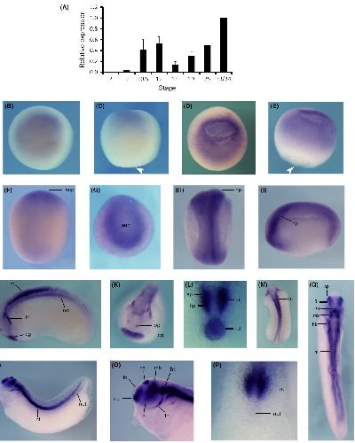 Figure 1 Expression of cnrip1 in early Xenopus development. (A) qRT-PCR analysis of cnrip1 mRNA expression during Xenopus