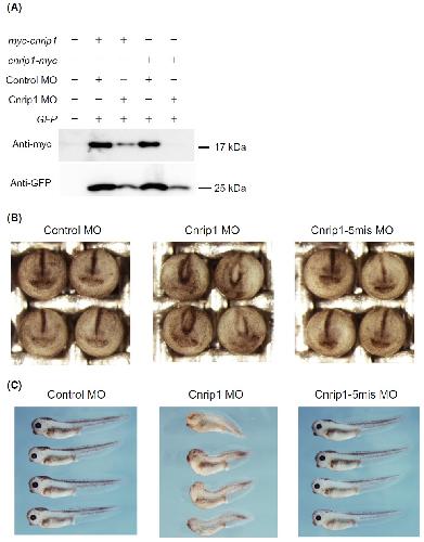 embryos were collected at stage 10.5 and extracted for immunoblotting analysis. (B, C) Control MO, cnrip1 MO or cnrip1-5mis