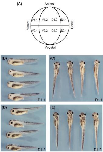 was injected into the animal region of two dorsal blastomeres at the 4-cell stage. Injected embryos were cultured until stage 41. Lateral