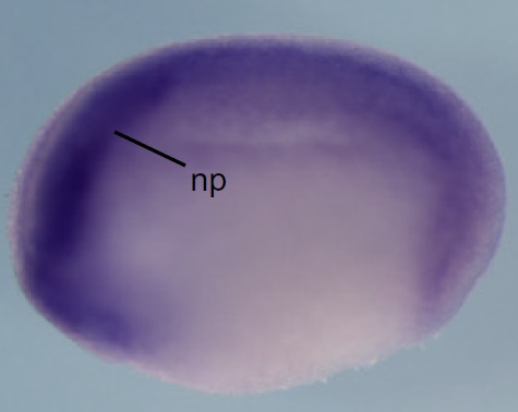 34 embryo shown in N. (P) A transverse trunk section of the middle part of a stage 33/34 embryo. anp, anterior neural plate; np,
