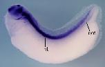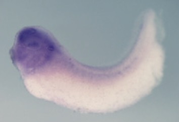 cnrip1 (cannabinoid receptor interacting protein 1) gene expression in Xenopus laevis embryo, assayed via in situ hybridization, NF stage 19, lateral view, anterior left, dorsal up. |