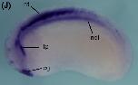 in the lateral views. Dorsal is upwards in lateral and anterior views. The lateral view of a stage 33/34 embryo is magnified in