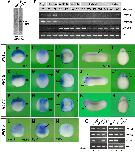 Figure S10. Overexpression or knockdown of PN1 does not affect expression of Gsc, Xnr3, Vent2, and Sox17a Whole-mount in situ hybridization of Xenopus embryos at early gastrula stage in vegetal (A,B,I,J) and lateral view (C-H, K-P). Embryos were injected into the margin (A-H) or animal pole (K-N) of a single blastomere at the 4-cell stage with nlacZ mRNA as lineage marker (red nuclei). Embryos in (I,J) were animally and in (O,P) marginally injected. Injected doses per embryo were: nlacZ mRNA (100 pg), PN1 mRNA (4 ng), MOs (15 ng in K-N; 60 ng in I,J,O,P). PN1-MO is an equal mixture of PN1.a-MO1, PN1.a-MO2, and PN1.b-MO. (A,B,I,J) Gsc expression in the dorsal mesoderm. (C,D,K,L) Xnr3 expression in the dorsal mesoderm. (E,F,M,N) Vent2 expression in the ventrolateral mesoderm and ventral ectoderm. (G,H,O,P) Sox17a expression in the endoderm. Indicated phenotypes were observed in A, 8/8; B, 15/15; C, 7/7; D, 8/8; E, 11/11; F, 14/19; G, 14/14; H, 25/25; I, 11/11; J, 15/15; K, 9/9; L, 10/10; M, 12/12; N, 18/18; O, 30/30; P, 26/26. |