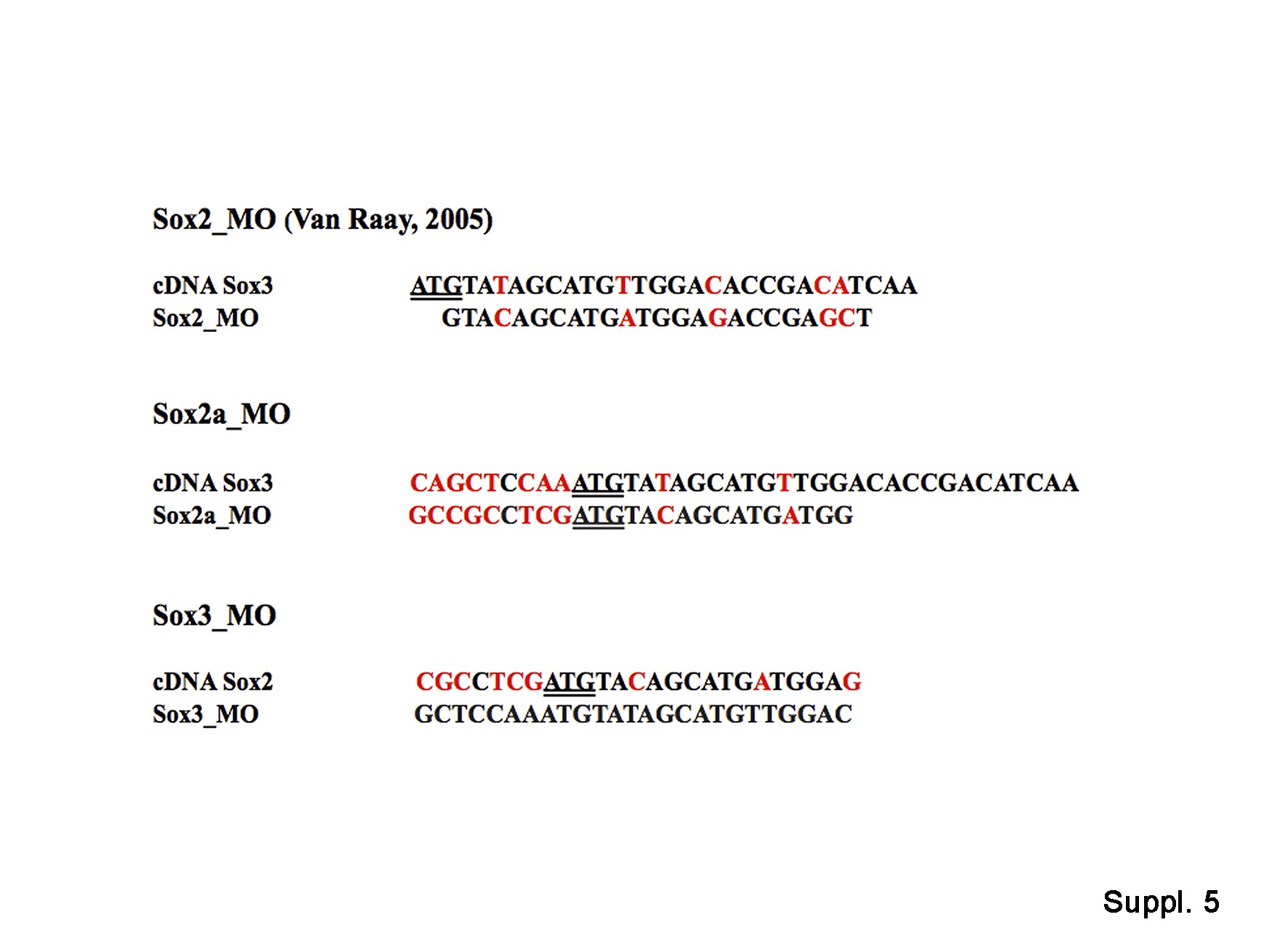 Fig. S5: cDNA and morpholino sequences. Alignments of sequences of cDNAs with the sequences of morpholino antisense oligonucleotides used. |