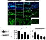 Fig. 3. Analysis of Sox2/3 expression in the spinal cord in non-regenerative and regenerative stages. (A–L) Longitudinal cryosections through the spinal cord of animals at stage 50 (A–C), 54 (D–F), 58 (G–I) and 66 (J–L), analyzed by immunostaining for Sox2/3 (green) and staining for TOTO3 (nuclei, blue). A, D, G and J. Double labeling for Sox2/3 and TOTO3. B,E,H and K. Sox2/3 only. (C, F, I and L) Higher magnification images of regions shown in white boxes in B, E, H, K. (M) Western blot showing immunolabeling for Sox2/3 in tadpoles (stage 50–58) and froglets (stage 66). α-tubulin immunolabeling is shown as a loading control. (N) Analysis of the signal intensity of Sox2/3 immunolabeling in of B,E,H and K. (O) Analysis of the area of the nuclei of C,F,I and L. cc: central channel, vz: ventricular zone and svz: sub-ventricular zone. Scale bars (A, B, D, E, G, H, J and K) 20 µm; (C, F, I and L) 2 µm. *P <0.05, **P<0.01, and ***P<0.001. (For interpretation of the references to color in this figure legend, the reader is referred to the web version of this article.) |