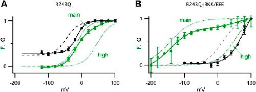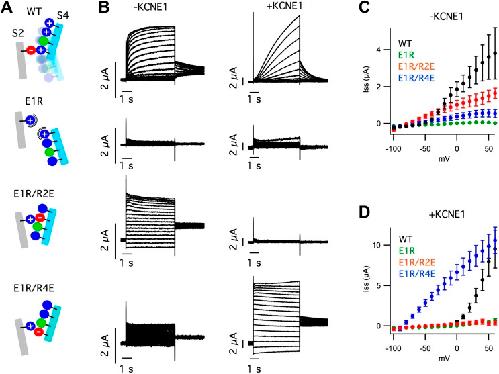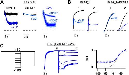 Barro-Soria, KCNE1 divides the voltage sensor movement in KCNQ1/KCNE1 channels into two steps. 2014, Pubmed