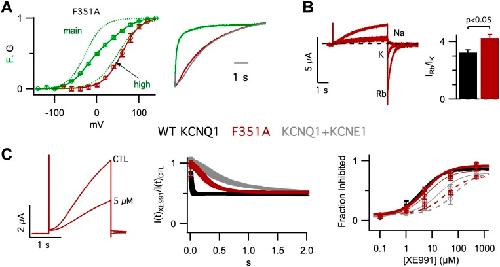 Pusch, Gating and flickery block differentially affected by rubidium in homomeric KCNQ1 and heteromeric KCNQ1/KCNE1 potassium channels. 2000, Pubmed , Xenbase
