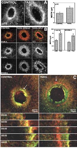 (C) Double-labeled image from a movie of an oocyte injected with OG-Tax (green) and Alexa 568-phalloidin (red). See Movie 5.
