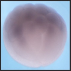 sox5 (SRY-box 5) gene expression in Xenopus laevis embryo, assayed via in situ hybridization, NF stage 2, lateral view, animal up. |