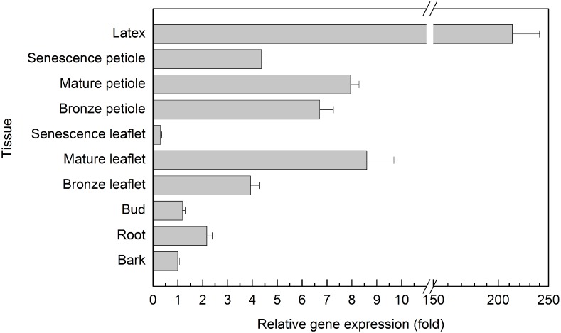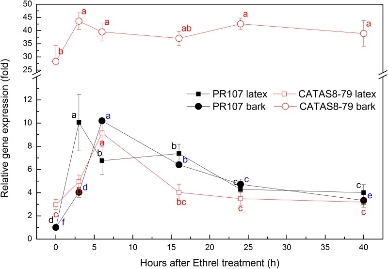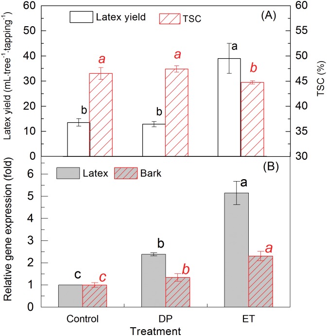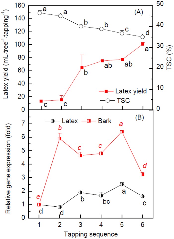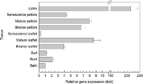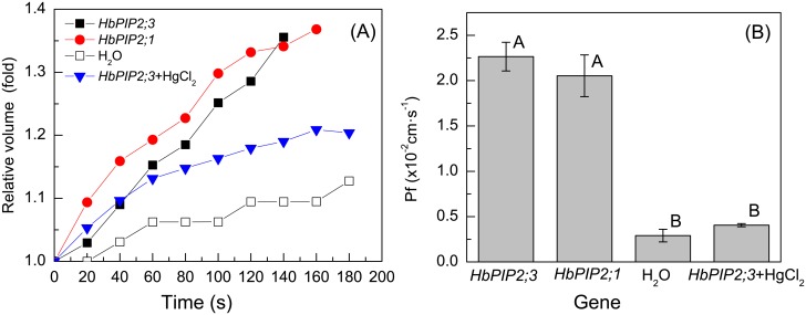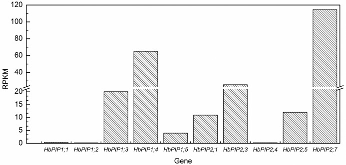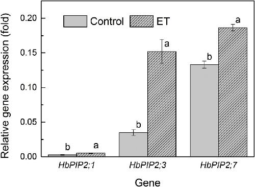 Rubber tree (Hevea brasiliensis) latex, the source of natural rubber, is synthesised in the cytoplasm of laticifers. Efficient water inflow into laticifers is crucial for latex flow and production since it is the determinant of the total solid content of latex and its fluidity after tapping. As the mature laticifer vessel rings are devoid of plasmodesmata, water exchange between laticifers and surrounding cells is believed to be governed by plasma membrane intrinsic proteins (PIPs). To identify the most important PIP aquaporin in the water balance of laticifers, the transcriptional profiles of ten-latex-expressed PIPs were analysed. One of the most abundant transcripts, designated HbPIP2;3, was characterised in this study. When tested in Xenopus laevis oocytes HbPIP2;3 showed a high efficiency in increasing plasmalemma water conductance. Expression analysis indicated that the HbPIP2;3 gene was preferentially expressed in latex, and the transcripts were up-regulated by both wounding and exogenously applied Ethrel (a commonly-used ethylene releaser). Although regular tapping up-regulated the expression of HbPIP2;3 during the first few tappings of the virginal rubber trees, the transcriptional kinetics of HbPIP2;3 to Ethrel stimulation in the regularly tapped tree exhibited a similar pattern to that of the previously reported HbPIP2;1 in the virginal rubber trees. Furthermore, the mRNA level of HbPIP2;3 was associated with clonal yield potential and the Ethrel stimulation response. Together, these results have revealed the central regulatory role of HbPIP2;3 in laticifer water balance and ethylene stimulation of latex production in Hevea.