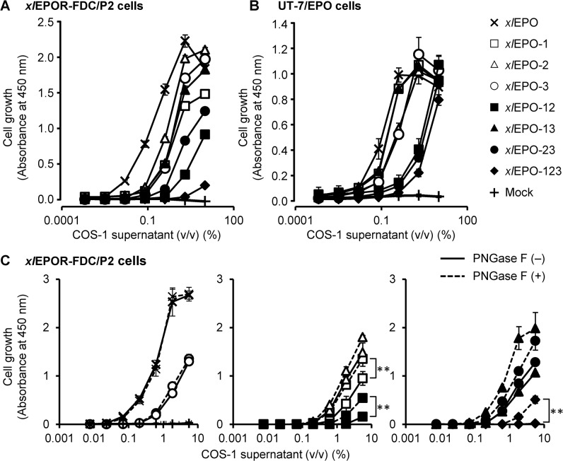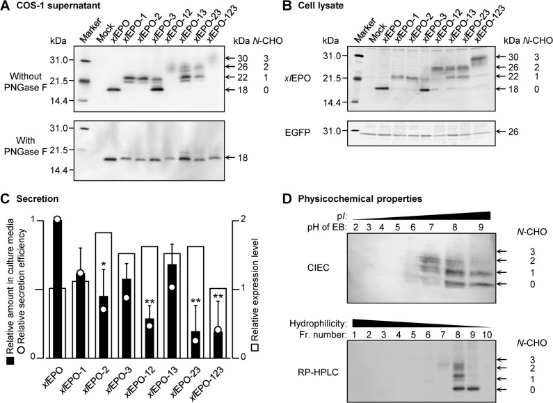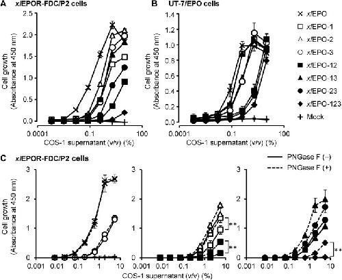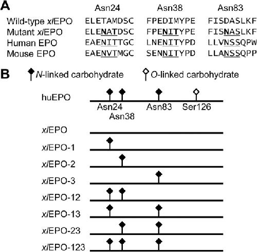 The influence of artificially introduced N-glycosylation sites on the in vitro activity of Xenopus laevis erythropoietin.