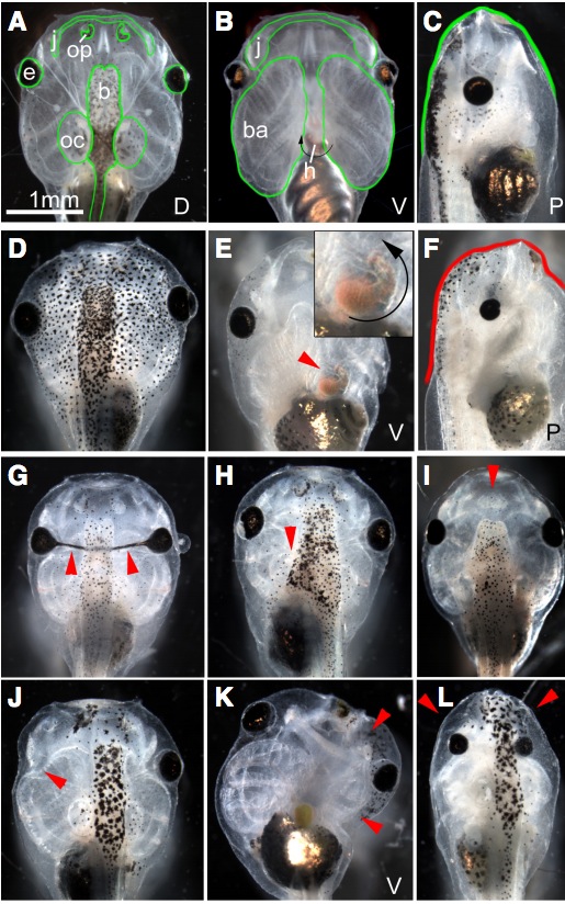 organ. (J) The lefteye of the tadpole is missing. (K) The jaw and branchial