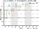 Figure 6. Higher degree of correlation between low-level coverage of sèt-group plasmids compared to low-level coverage of kat-group plasmids.Range of correlation values for coverage levels 1X, 2.5X, 5X, 10X and 15X are displayed as a whisker plot. The pair-wise comparisons of the three replicates for plasmid p4.1 and the three replicates for plasmid p.4.2 from the kat-group plasmids are displayed as orange whisker-boxes and the pair-wise comparisons of the three replicates for plasmid p7.1 and the three replicates for plasmid p.7.2 from the sèt-group plasmids as blue whisker-boxes. The Pearson's correlation values are on the y-axis and the coverage levels are on the x-axis.