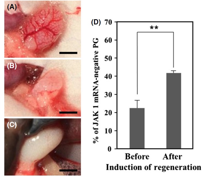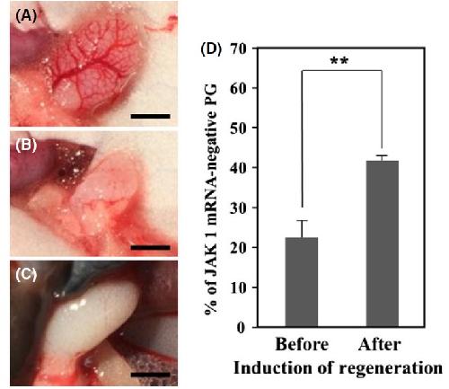 Fig. 7. Expression of JAK1 mRNA in regenerating testis. (A) A