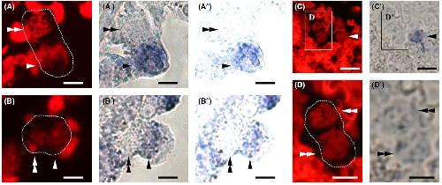 side with no signal. Aâ and Bâ are higher contrasted images of Aâ and Bâ, respectively. After detection of JAK1 mRNA by in situ hybridization,