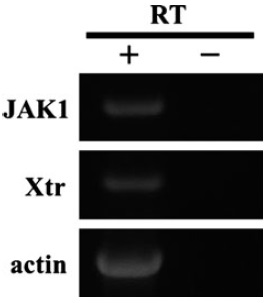 or without (RTâ) transcriptase. cDNA fragments encoding JAK1,