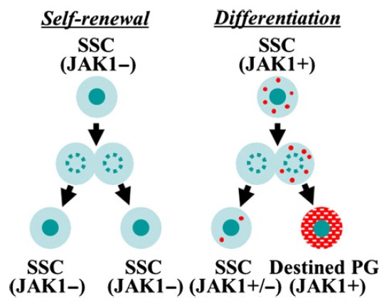 asymmetric distribution of JAK1 mRNA in spermatogenic stem