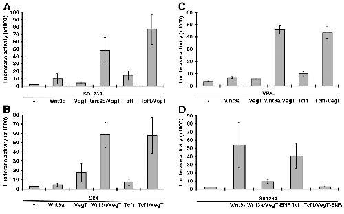 can be observed using the S24 mutant promoter lacking the three canonical Tcf/Lef-binding sites. (C)