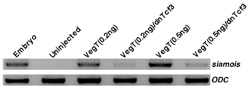 equatorial region. RT-PCR analysis of siamois expression was examined at the start of zygotic