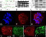 Figure 1. A: All three Cetn RNAs are present throughout the course of early development (data derived from Yanai et al. (2011)). B: This result was confirmed by RT-PCR analyses of Cetn2a, Cetn3l, and Cetn4 RNAs using ornithine decarboxylase (ODC) as a normalization control (embryonic stages are noted). C: Embryos injected with RNA (200 pg) encoding GFP alone or together with Cetn2a-myc or Cetn3l-myc were harvested at stage 11 and analyzed by SDS-PAGE-immunoblot. The anti-human Cetn1 antibody reacted preferentially with X. laevis Cetn2, while the anti-XlCetn antibody reacted with Cetn2 and Cetn3, as well as Cetn4 (data not shown). Ectodermal explants were fixed when sibling control embryos reached stage 18 and stained with anti-acetylated α-tubulin (AAT)(D) and anti-XlCetn antibodies (E; F displays the overlap of images in parts D and E); this revealed the localization of Cetns to the basal body region of cilia. A similar analysis was carried out on whole embryos (G,H - stage 25, I,J-stage 35) stained with anti-XlCetn (G,I) and anti-acetylated α-tubulin (H,J). Anti-Cetn staining of the myotome (arrow in part G) and Cetn’s localization to the olfactory region of the later stage embryo (arrow in part I) was obvious, as was its absence from the cement gland (“CG” in part J). Scale bar in part F marks 5 μm in parts D-F, scale bar in part I marks 90 μm in parts G-J. |
