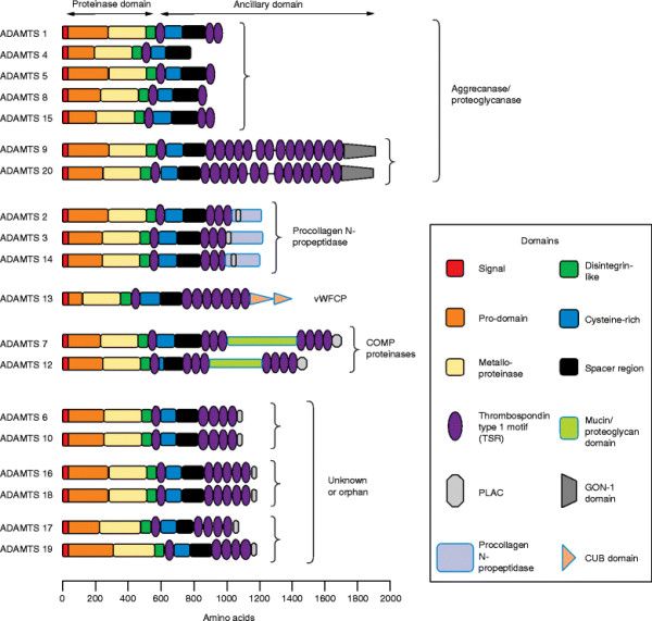 Apte, A disintegrin-like and metalloprotease (reprolysin-type) with thrombospondin type 1 motif (ADAMTS) superfamily: functions and mechanisms. 2009, Pubmed