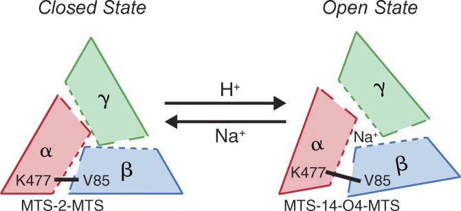 Intersubunit conformational changes mediate epithelial sodium channel gating.