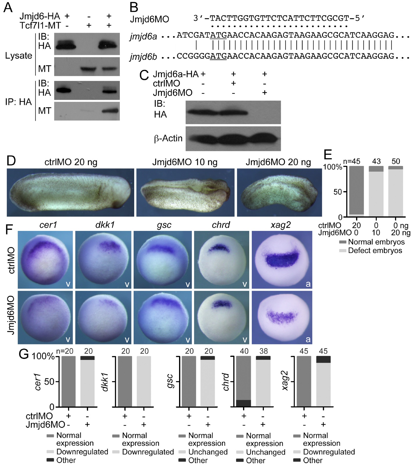 FIGURE 6. Jmjd6 is required for Xenopus embryonic development. A, Co-IP detection of the