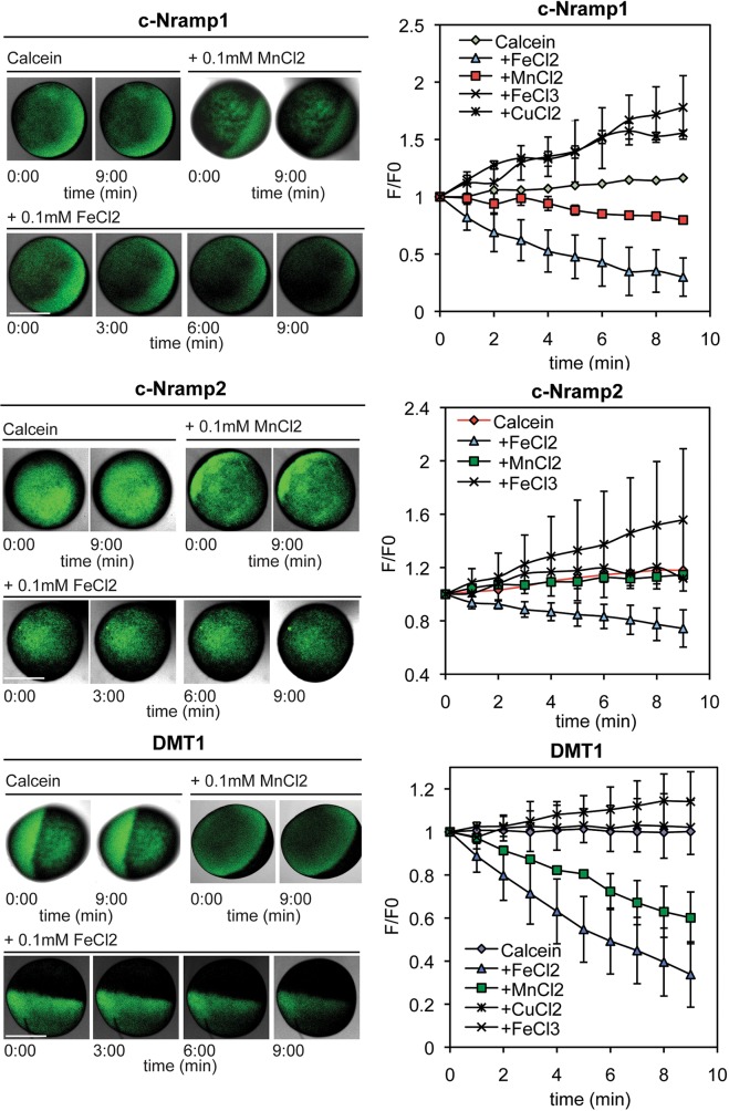 Mackenzie, Divalent metal-ion transporter DMT1 mediates both H+ -coupled Fe2+ transport and uncoupled fluxes. 2006, Pubmed , Xenbase