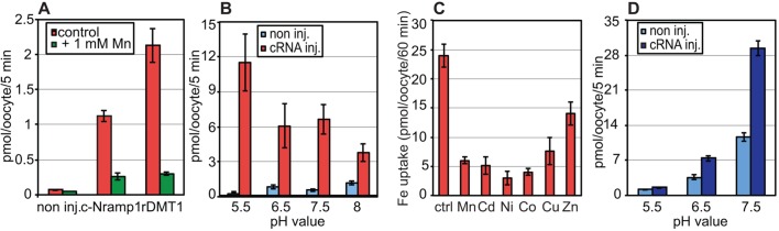 Cailliatte, High-affinity manganese uptake by the metal transporter NRAMP1 is essential for Arabidopsis growth in low manganese conditions. 2010, Pubmed