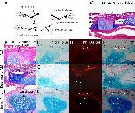 Fig 9. Xenopus ALM blastema cells do not have cartilaginous differentiation capacity.(A) The scheme of the experiment. (B-E) Xenopus ALM blastema cells were grafted to the bone wound site. (B) HE and Alcian blue staining. Bâ is a lower magnification image of B. Black lines indicate bone crack area. (C) Alcian blue staining. The cartilaginous callus was visualized by Alcian blue stain. (D, E) Grafted cells were PKH26-positive (red). PKH26-positive cells were not observed in cartilaginous callus. White arrow heads indicate PKH26-positive cells. (F-I) Deep wound ALM blastema cells were grafted to the bone wound site. (F) HE and Alcian blue staining. (G) Alcian blue staining. (H, I) Grafted cells were observed in the cartilaginous callus. (J-M) Control experiment. Normal blastema cells were grafted to the bone wound site. (J) HE and Alcian blue staining. (K) Alcian blue staining. (L, M) Grafted cells were observed in the cartilaginous callus. B-M are shown at the same magnification. Scale bar in B is 200 μm. Scale bar in Bâ is 500 μm.