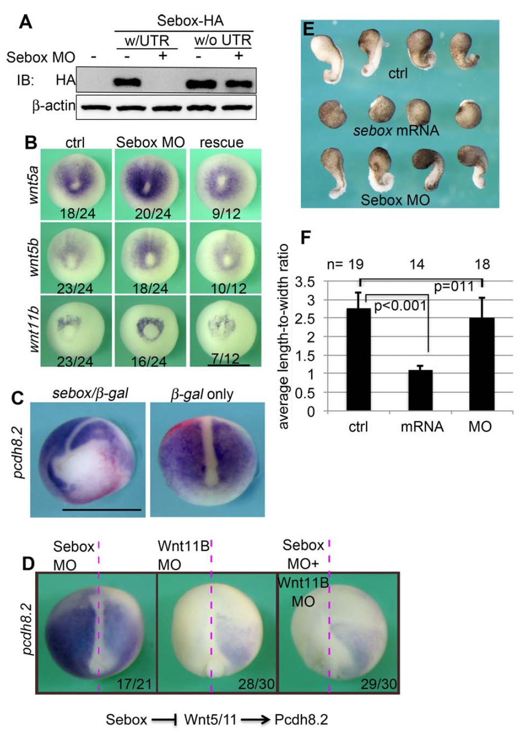 bar¼1 mm. F: WISH for wnt5a, wnt5b and wnt11b expression in stage 11 embryos injected with 400 pg sebox mRNA into the dorsal part at the