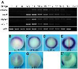 embryonic development, assessed by RT-PCR. The marker odc served as a loading control. BâG: Whole-mount in situ hybridization (WISH) for