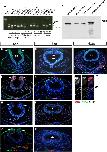 Fig 6. VICKZ1 mediates Integrin α6 expression and co-immunoprecipitates with Integrin α6 mRNA.2-4ss embryos were electroporated with control-GFP (A), full length VICKZ1- GFP (B), or Y396F-GFP (C), and then fixed and stained for Integrin α6 (red) and GFP (green) 10 hours later. In control-GFP transfected embryos, Integrin α6 is down-regulated in the dorsal aspect of the tube in the region where CNC delaminate, on both the transfected and non-transfected sides (A, inset 1 and 2). Overexpression of VICKZ1 maintains Integrin α6 expression even in the most dorsal regions of the tube, but only on the transfected side (B, inset 1), and not on the non-transfected side (B, inset 2). Y396F expression causes a precocious emigration of CNC and down-regulation of Integrin α6 in more lateral regions of the tube, only on the transfected side (C, inset 1) and not on the non-transected side (C, inset 2). All insets show only the red channel (ITGA6). Arrows in insets indicate areas of downregulation of ITGA6. (D) RNP complexes were prepared from 3d and 4d old chick embryos and immunoprecipitated with either pre-immune serum or pan-VICKZ antibody. Equal volumes of total lysates (Total) and immunoprecipitates (IP) were subjected to western blot analysis using the pan-VICKZ antibody. VICKZ protein is pulled down exclusively by the pan-VICKZ antibody. (E) Quantitative RT-PCR analysis was performed on cDNAs prepared from both pre-immune and pan-VICKZ immunoprecipitations and tested for the presence of ITGA6 mRNA. Values of pan-VICKZ IP mRNA were normalized to the amounts of total mRNA, and compared to the pre-immune normalized values (pan-VICKZ/pre-immune). A 15–16 fold enrichment of ITGA6 mRNA is observed in the pan-VICKZ IP, as compared to the pre-immune serum. A control RNA, 18S, shows only 1–2 fold enrichment when analysed in the same way. The data show the mean±SEM. |