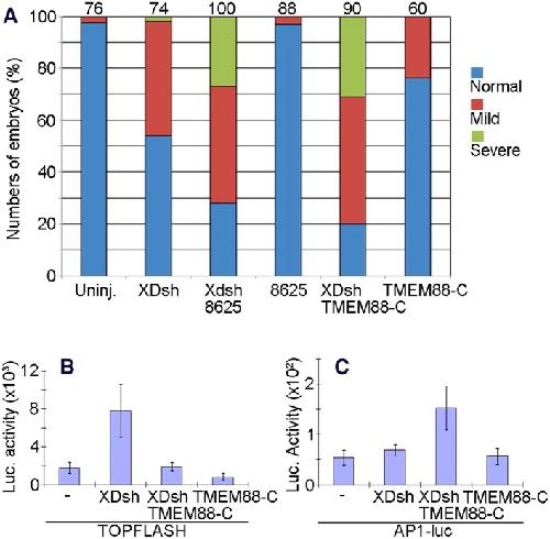 Lee, Identification of transmembrane protein 88 (TMEM88) as a dishevelled-binding protein. 2010, Pubmed , Xenbase