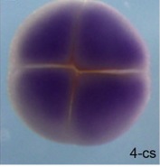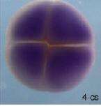 nf2 (NF2, moesin-ezrin-radixin like (MERLIN) tumor suppressor) gene expression in Xenopus laevis embryo, assayed via in situ hybridization, NF stage 3 (4cell), animal hemisphere view.