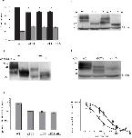 Fig 4. hENT1 loop deletion mutants show similar sub-cellular distribution and susceptibility to NBMPR inhibition.(a) Fraction of intra- and extra-cellular distribution of EGFP-hENT1 variants. Confocal images shown in Fig 2 were quantified and the fluorescence in the ER and plasma membrane expressed as percent of the total fluorescence. Shown are means and SE for 30 oocytes. * p<0.05. The black and grey bars represent the extra and intracellular fluorescence respectively. (b) The total protein expression assessed by Western blot. 100 μg of proteins were loaded in each lane. The EGFP-hENT1 fusion proteins were visualized using EGFP monoclonal antibody. Constructs are shown above the lanes. (c) Western blots showing deglycosylation of the WT and âIL6 mutant. 100 μg of the proteins were incubated with and without deglycosylase for 4 hr at 37°C. (d) Western blots for carboxyl terminal deletions. 400 μg of the WT, â3CTM and â1CTM deletions were loaded in each lane and visualized with EGFP monoclonal antibody. The migration positions of the molecular weights standards are indicated in panelâs b-d. Actin was used as the internal control to show equal loading in lanes b and d. (e) Quantification of NBMPR binding sites. Oocytes were injected EGFP-hENT1 RNA were incubated for 48 hrs prior to addition of 500 nM 3H NBMPR for one hr. Radioactivity retained by washed oocytes was measured and corrected for background. Values are expressed as mean ± SE for 5 oocytes for 3 independent experiments done in triplicate. (f) Adenosine uptake after NBMPR inhibition. Values corrected for background are expressed as mean ± SE for 5 oocytes for 3 independent experiments done in triplicate. Shown are WT (closed circles), âIL1 (open circles), âIL6 (closed squares), and âEL1/âIL6 (open squares).