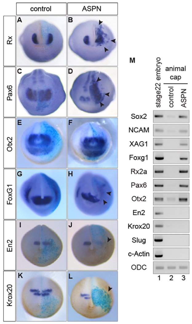 (E) ASPN has neural-inducing activity. Animal caps injected with