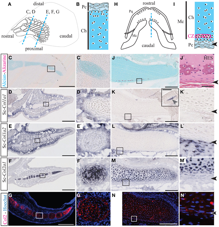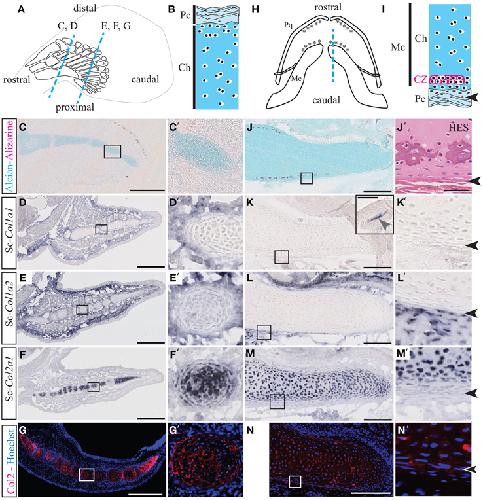 Genes referenced: col1a1 col1a2 col2a1 nlrp1