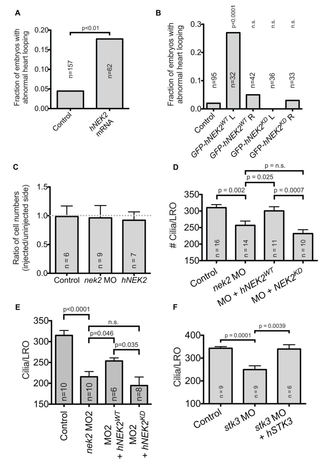 LRO of unilaterally-injected embryos. (D) Injection of WT hNEK2 mRNA is able to rescue