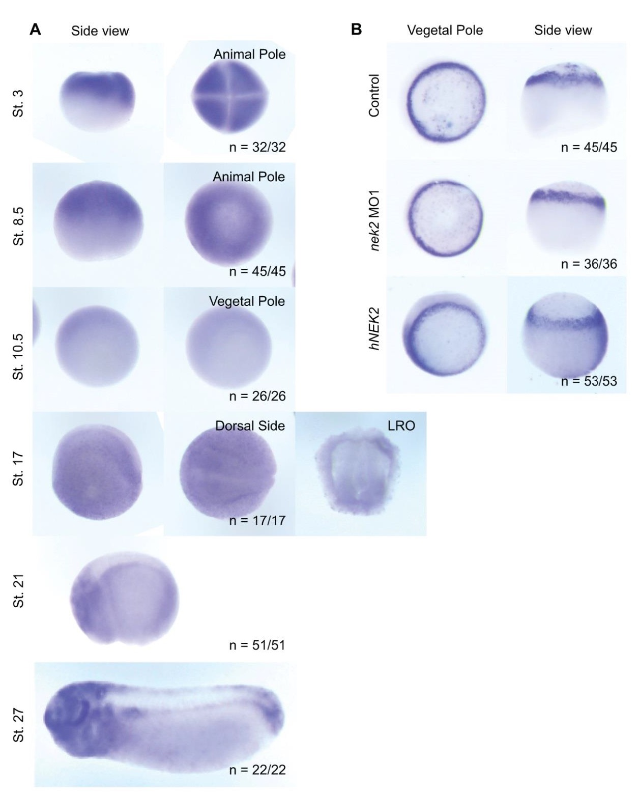 numbers in the LRO. 2-cell Xenopus embryos were injected unilaterally with dye (A), nek2